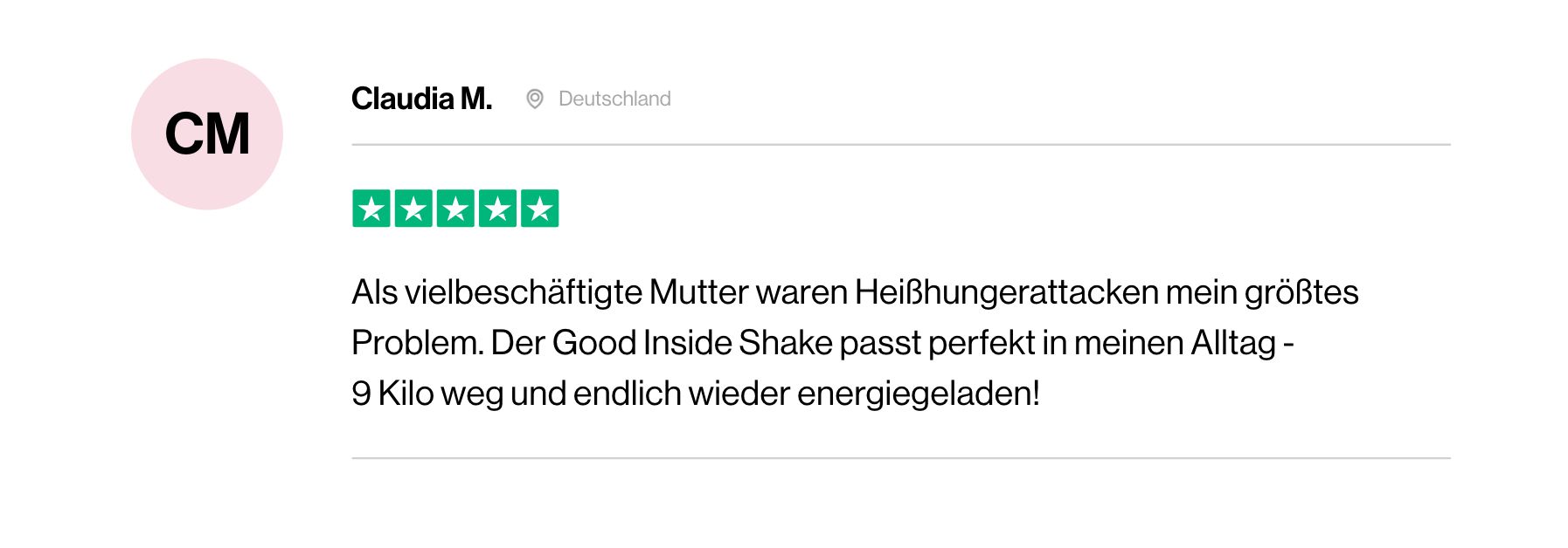 Es gab buchstäblich unzählige Testimonials von Anwenderinnen, die begeistert schilderten, wie ihre Heißhungerattacken nach dem Verzehr des good inside shakes vollständig verschwanden – genau der Effekt, den man von einer optimierten GLP-1-Ausschüttung erwarten würde!